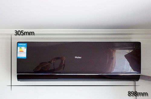 海尔KFR-35GW/03CAA21空调室内机尺寸达到了898*305*185fa_cms_addonnews,室内机重量达到了17Kg,而同类产品室内机基本在12kg以内,可以肯定的是为了实现“一级能效”,海尔空调使用了足够多的蒸发器和铜管。而为了保证空调室内的安全,安装板也就更为“粗壮”。