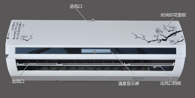 这款挂壁式健康专家空调,采用皓光水墨画面板,给人的视觉感受完全符合当下人们口头的“高大上”,而且墨梅与简短的诗词更赋予了房间一种幽远的意境,瞬间让人觉得从空调中吹出的风都带有了文艺气息,整个房间显得大气而又文雅。