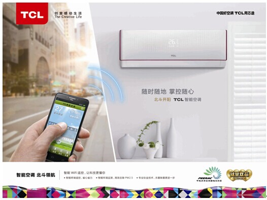 TCL智能空调开阳系列主aaa要基于智能WIFI遥控,用户只要将手机、PDA、电脑、电视等智能终端安装上TCL空调的APK或APP,即可登录TCL空调智能云网络服务器,并通过微信、IOS、安卓等系统,对空调进行远程操控。