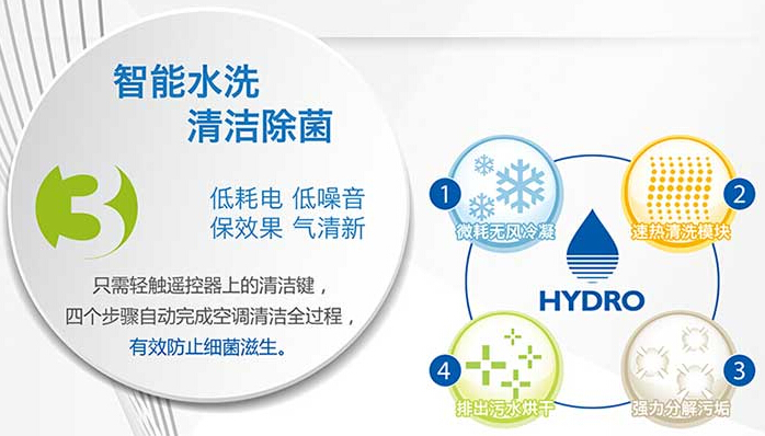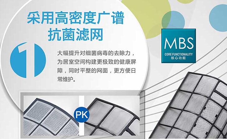 此系列空调能够运用自动水洗防霉净芯技术,空调停机后,室内机风轮继续以微风状态运行一小会儿,利用蒸发器余热将空调内部零件上的水吹干,保持机体内部的清洁干爽。有效防止空调内部因发生霉变而引起细菌传播。