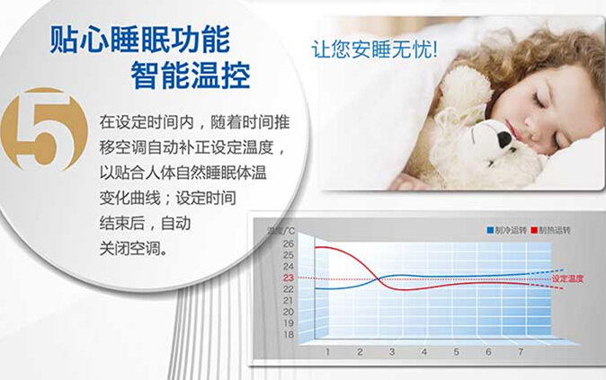 高一度、低一度它都能够细心察觉,并配合您进入最佳舒适度,人性化睡眠模式,智能感知,科学的根据您睡眠时的体温变化自动调整运行状态和温度,让您安享深度睡眠。