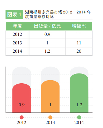 作为人口大县,当地居民生活水平逐年提高,同时也带动空调市场持续增长。在长期的市场竞争中,格力、美的、海尔三大品牌稳占永兴县大部分市场份额,2014年度达到近79%。本年度当地空调市场上,智能化的变频机销量增幅明显。2014年度郴州永兴县空调市场销售额约1.2亿元,同比去年增幅达到20%(图表1)。