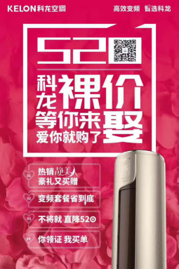 5月19日至22日,科龙空调在全国推出“科龙裸‘价’等你来娶”为主题的大型市场推广活动,针对家装、新婚等刚需,推出“定金十倍返”、“豪礼买赠”、“买一赠一”等活动形式,特别针对年轻人群对520节日的关注,推出“不将就,直降520”、“你领证,我买单”、“520抢科龙泰国免费蜜月游”等,从大手笔的资源投入及用户情感切入等层面,撬动市场需求,直击用户需求痛点,消费反应异常强烈。