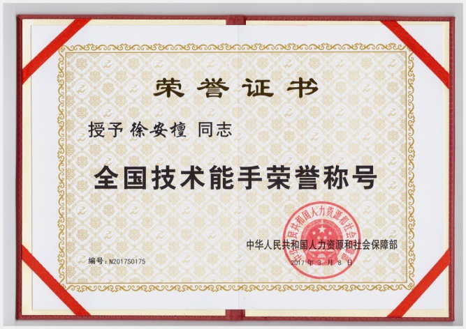 2015年10月,以徐安檀为首的长虹空调代表队在“金刚钻”第六届全国家电服务业职业技能竞赛,空调类的竞赛中,力压群雄,取得竞赛团体第一名的好成绩,他也以个人第三名的优异成绩成为了全国“最美服务工程师”,并成为“2016年度中国电子电器服务业形象大使”,同时,他被共青团中央授予“全国青年岗位能手”光荣称号。