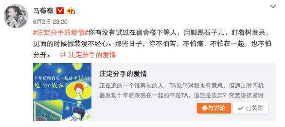 “没有爱了,你还需要陪伴?养条狗啊!”金句女王马薇薇在“奇葩说”里语出惊人,曾一度以为对待感情也是如此洒脱的她却在一则视频中自爆遇到了难以抉择的真爱想和大家聊一聊,在微博上也有吃瓜网友开始#和马薇薇聊真爱AI#,这是什么情况?