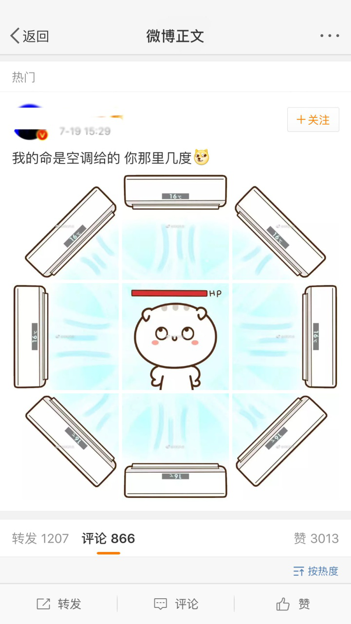 面对“烤”验,大家纷纷在微博、朋友圈开起了空调。