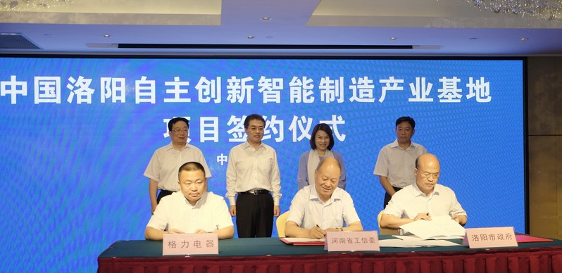 近日,中国洛阳自主创新智能制造产业基地项目签约仪式在郑州举行。河南省工业和信息化委员会、洛阳市人民政府、珠海格力电器股份有限公司签署战略合作框架协议,洛阳市高新技术产业开发区与珠海格力电器股份有限公司签订中国洛阳自主创新智能制造产业基地项目合作框架协议,合作方将在洛阳高新区共同建设中国洛阳自主创新智能制造产业基地项目。