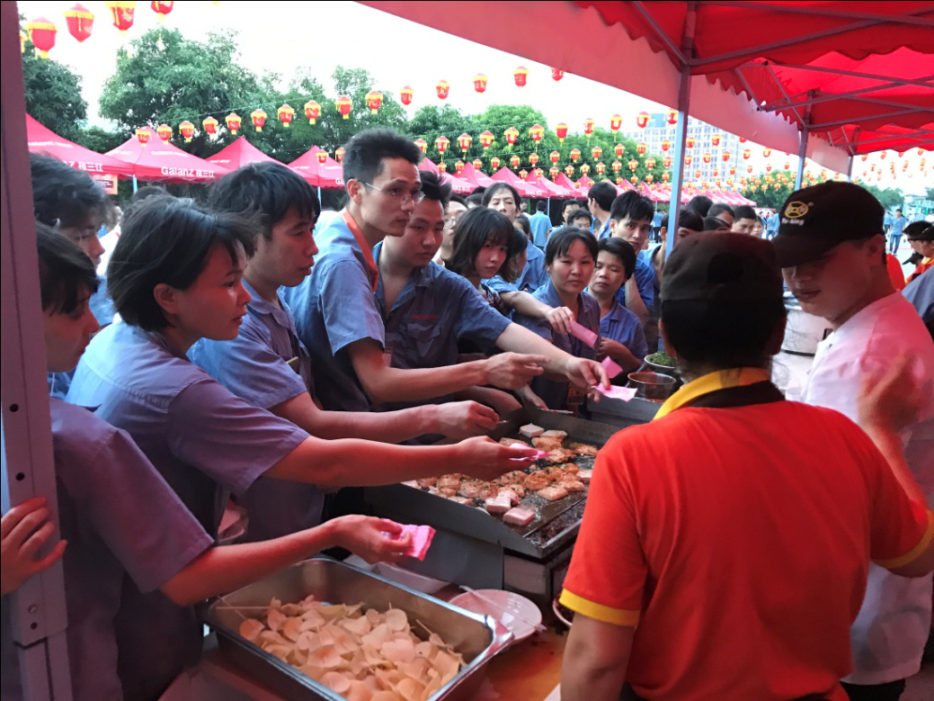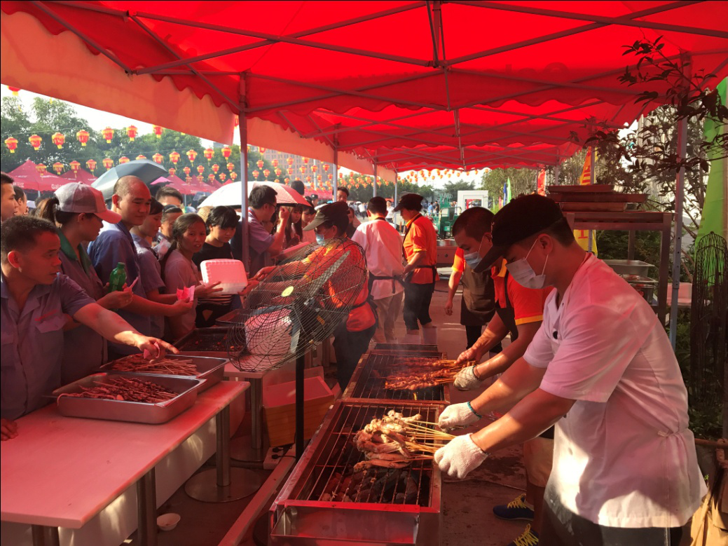 精彩活动不能停,下午3点美食汇开始咯~远远就能闻到烧烤的香味,一路上走过去,能看到员工们捧着大西瓜和大袋小袋的小吃,还有每一个摊位都挤满人,这个“下午茶”太丰富啦!羊肉串、大闸蟹、肉丸、蛋挞…..就想到了美食节。