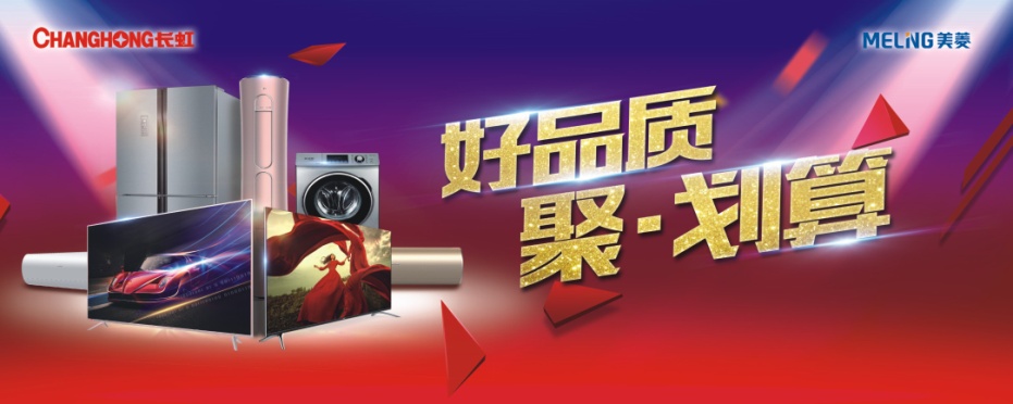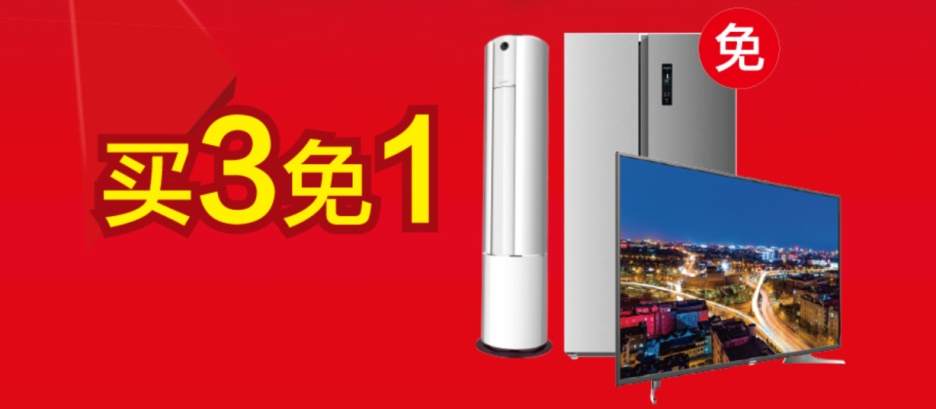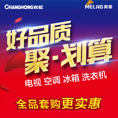 购买长虹电视、长虹空调、美菱冰箱/洗衣机三大件及以上的,享受各品类买赠的同时,可免其中一件产品费用。