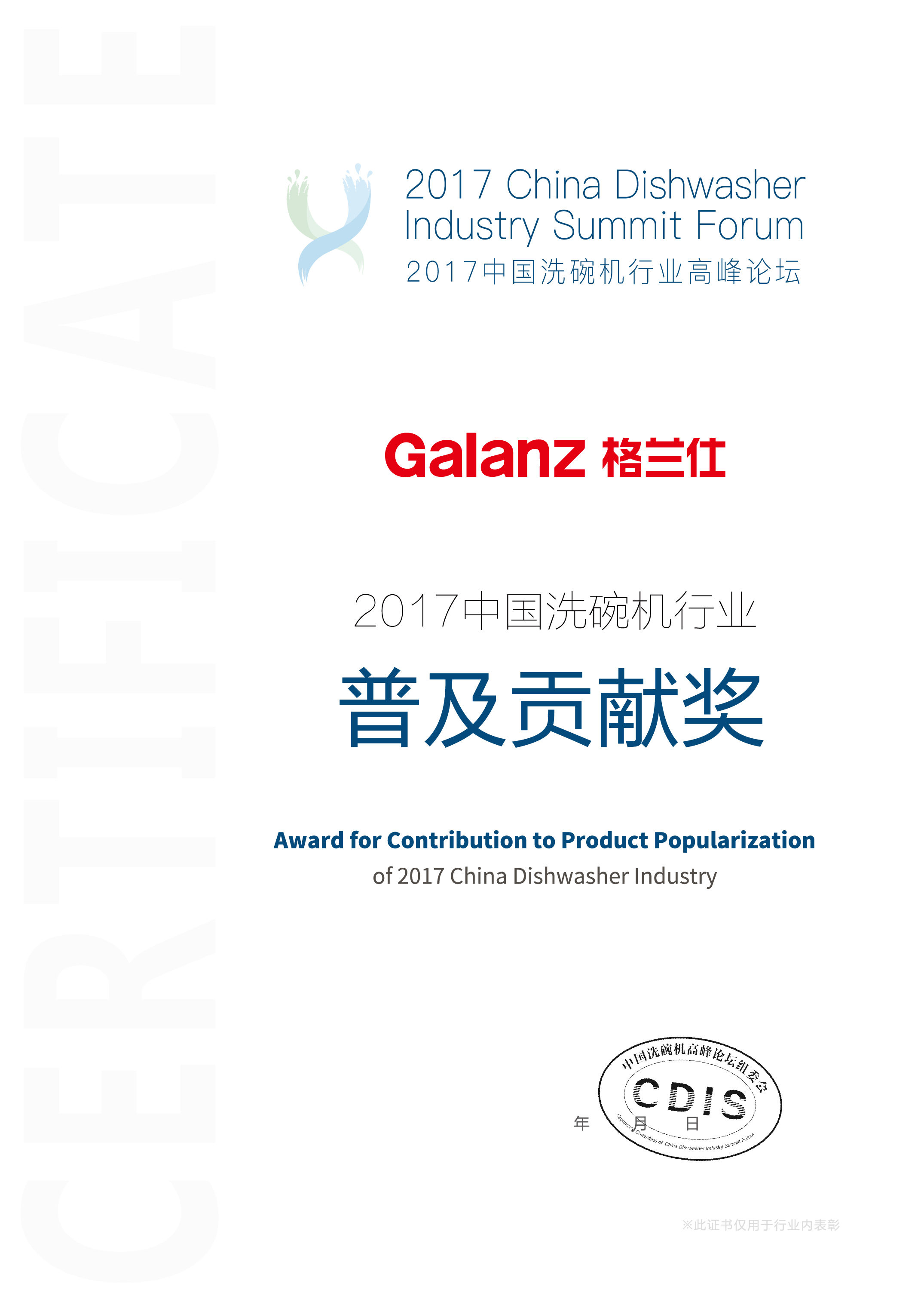有关业内专家指出,专注智造39年的格兰仕深谙用户需求,积极掀起中国洗碗机普及行动,通过“免安装”,“本土化改良”等技术创新实现产品功能价值和用户体验的有效升级,在洗碗机市场中展现了新姿态,确立了“洗碗机行业普及贡献”的领先地位,为中国洗碗机行业消费升级树立了新标杆。