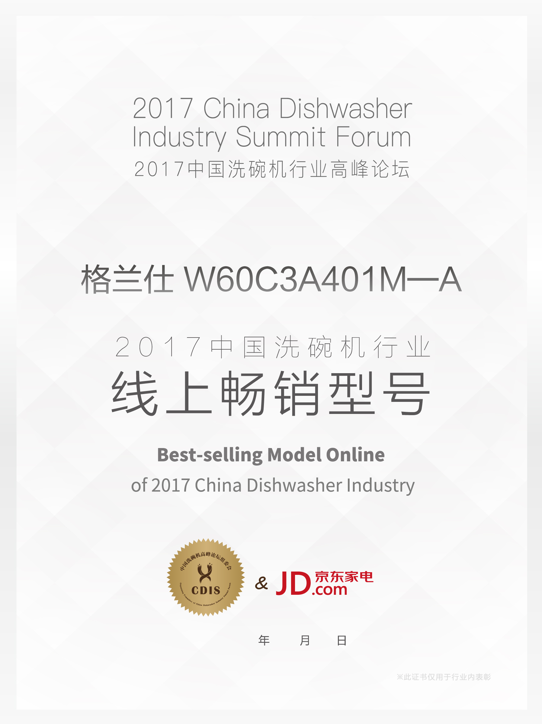 2017年,中国洗碗机产品销量增幅迎来三位数的爆发式增长,中国厨电市场正迎来一场洗碗机消费普及的风潮。10月12日,由中国家用电器协会指导、中国家电网主办的2017中国洗碗机行业高峰论坛在北京举行。论坛对行业主流品牌进行了嘉奖,格兰仕荣获“2017中国洗碗机行业普及贡献奖”、“2017中国洗碗机行业普及创新型号(W3A1G1(W))”、“2017中国洗碗机行业畅销型号(W60C3A401M—A)”和“2017洗碗机行业线上畅销型号(W60B3A401S—AS)”共4项大奖,再次凸显了格兰仕在推动洗碗机行业消费普及和产品创新方面的引领地位。