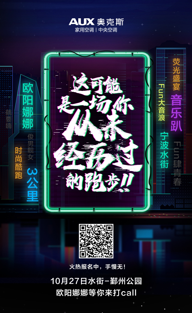 据悉,一场宁波鄞州区团委及奥克斯联合主办的“AUX RUN荧光乐跑”即将于10月27日在宁波水街-鄞州公园拉开帷幕。作为赛事活动的重要组成部分,奥克斯公益跑鞋计划二期也将同步落地。