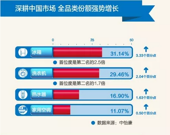 青岛海尔三季度报业绩显示,公司海外收入占整体收入43%,坚持海外创牌市场全面增长。其中,海尔空调在印度、泰国、意大利等南亚、东南亚、欧洲等区域位居中国自主品牌第一。同时,海尔空调在俄罗斯市场第一,并保持在巴基斯坦市场连续11年市场第一的成绩。