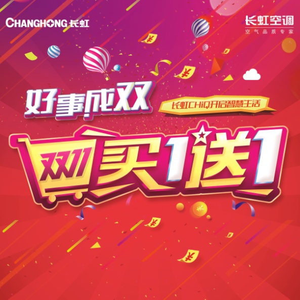 随着时代的不断向前发展,智能空调将会越来越普及。长虹智能空调双11推出买一送一活动,优惠幅度超出您的想象(活动详询各大长虹空调门店),赶快买买买吧。