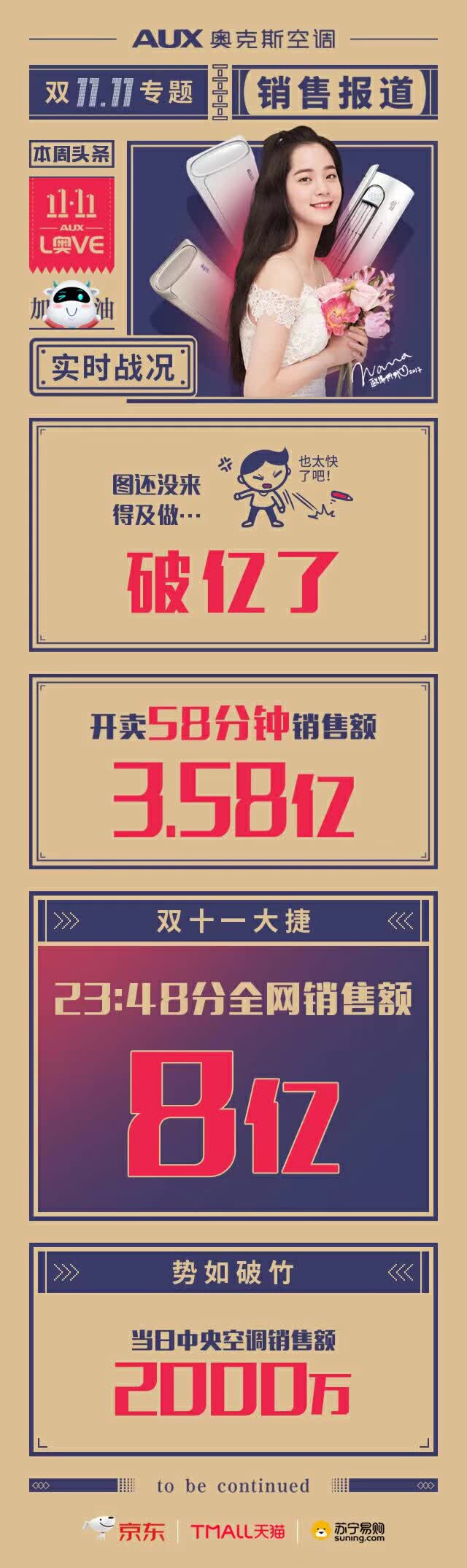 2017年双11大战开抢第一秒,奥克斯空调下单量就相当于搬空了一座3000㎡的仓库;美工还没来得及制作宣传海报,销售额已经破亿;58分钟拿下3.58亿元,最终以8亿元的全网销售额名列本次双11空调榜单前列,并成功卫冕宁波地区品牌双十一销售冠军;而浙江的张女士下单9小时后,奥克斯团队送达到家并安装完成,再次刷新“奥克斯速度”。