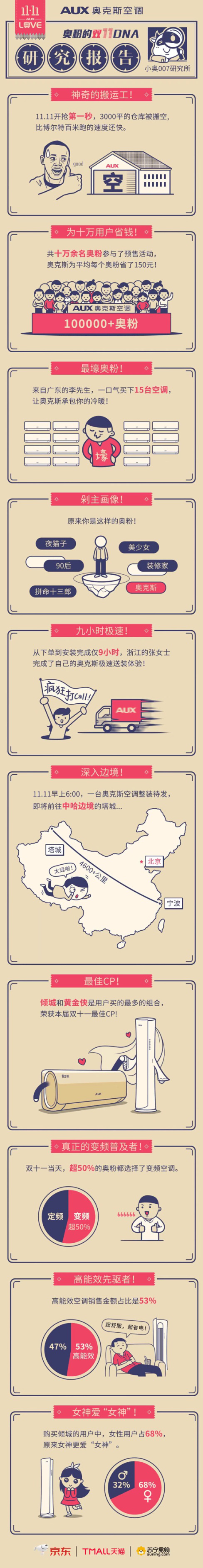 从奥克斯空调发布的数据表明,旗下以古典卷轴外观俘获大众的倾城系列和快速制冷制热闻名的黄金侠系列成为本届双11最佳CP;共有10万余名奥粉参与预售活动,奥克斯品牌平均为每个奥粉省下150元;一位来自广东的李先生,一次性采购15台空调,成为当天最壕奥粉;女性用户占据68%的份额,有超过50%的奥粉选择变频空调,奥克斯高能效产品销售额占比达到53%。
