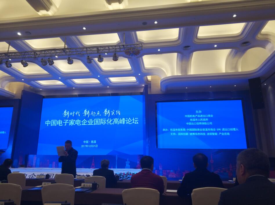 会上,各领域专家围绕国际经济贸易进入新时代这一主题进行对话,各企业代表就中国电子家电企业国际化经验交流对话;下午还将举行“智能出海与市场机遇”专题论坛和“风险防范与贸易合规”专题论坛。