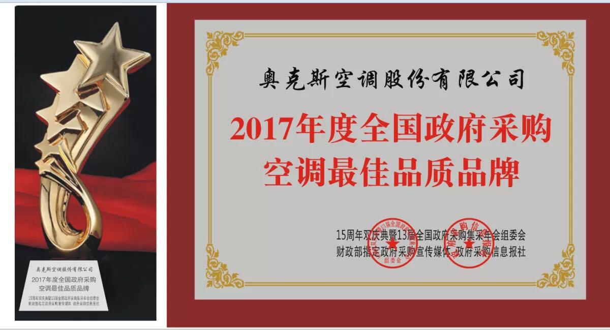 作为家电行业领导品牌的奥克斯与政府采购市场有着不解之缘。早在2015年奥克斯就直面地产生态链的现状,抓住市场先机,优化内部结构,成立新渠道部门,在工程市场B2B方面不断发力,深受政采的信赖,取得了优异的战果。2018冷年开盘之际,奥克斯就连续中标2017年度广州市第二期普通空调设备批量集中采购、四川省省级单位2017年5-6月份空调批量集中政府采购、中央国家机关2017年空调批量集中采购等三大项目,彰显奥克斯空调的品质风范,2017年度全国政府采购空调最佳品质品牌大奖,亦是13届全国政府采购集采年会对奥克斯品质的认可。