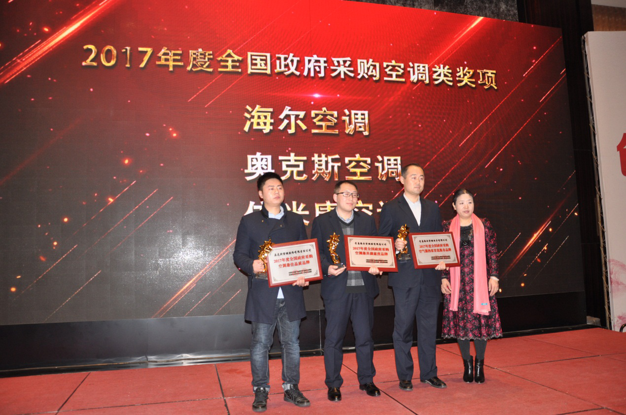 作为政府采购的合作伙伴,奥克斯也在盛会现场荣膺“2017年度全国政府采购空调最佳品质品牌”。