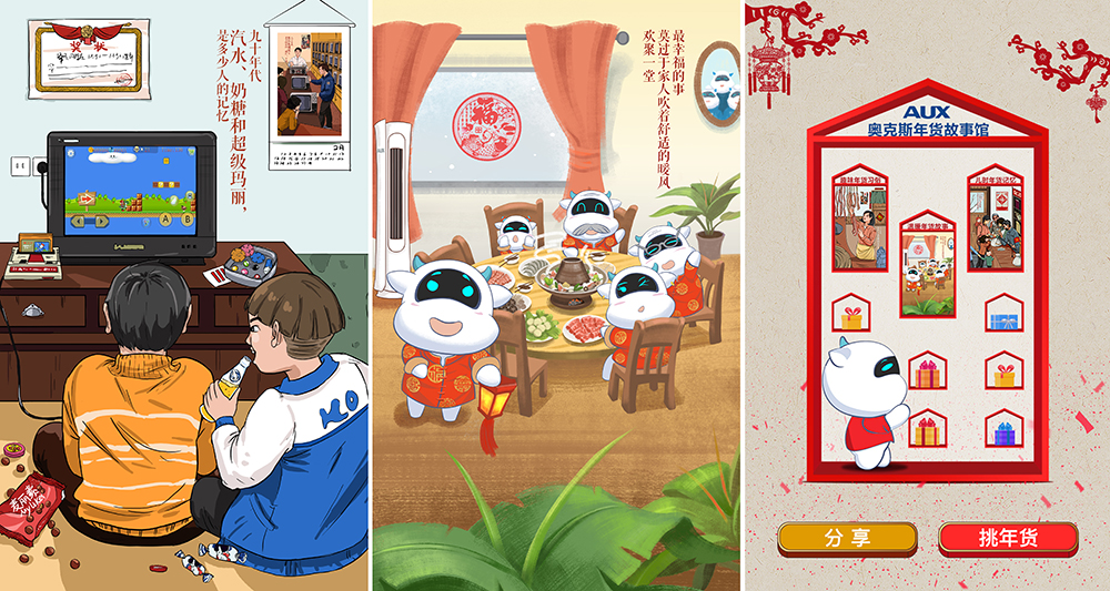 而今年1月19日~2月25日,奥克斯空调继续温情开启“年货节”,购机不但有优惠礼,更是附赠了传统的年货大礼包,还为返乡者提供了车票补贴政策,可谓是双重贴心。除了线上线下的“年货节”,今年又会用怎样别出心裁的招式为消费者打造暖心年末礼呢?不妨在奥克斯率先推出的走心H5《回忆杀!童年最期盼的新年礼物都在这里了》中窥探一二吧。