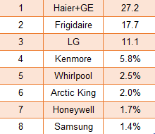 2017年美国市场空调市场品牌份额数据