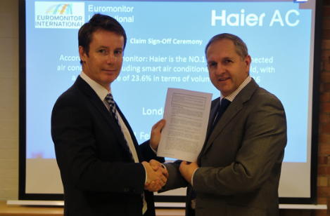欧睿国际颁发海尔互联空调全球销量第一证书