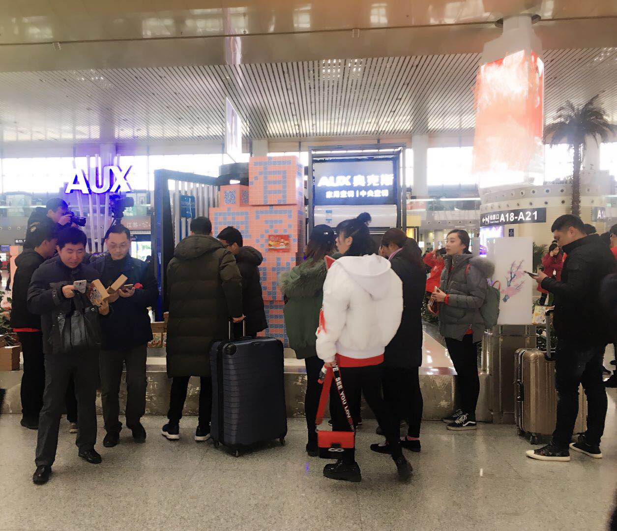 仿佛是在一夜之间,南京南高铁站惊现由无数神秘二维码组成的“有家的地方就有奥克斯”的字样。小编来到现场时,这里已经聚满了扫码的游子们。嘈杂的候车大厅内,不时听到游客惊呼“中了,中了”“我也中了”。原来这是奥克斯空调趁着春节来临之际,把为游子们准备的暖心年货藏在了这些二维码里。