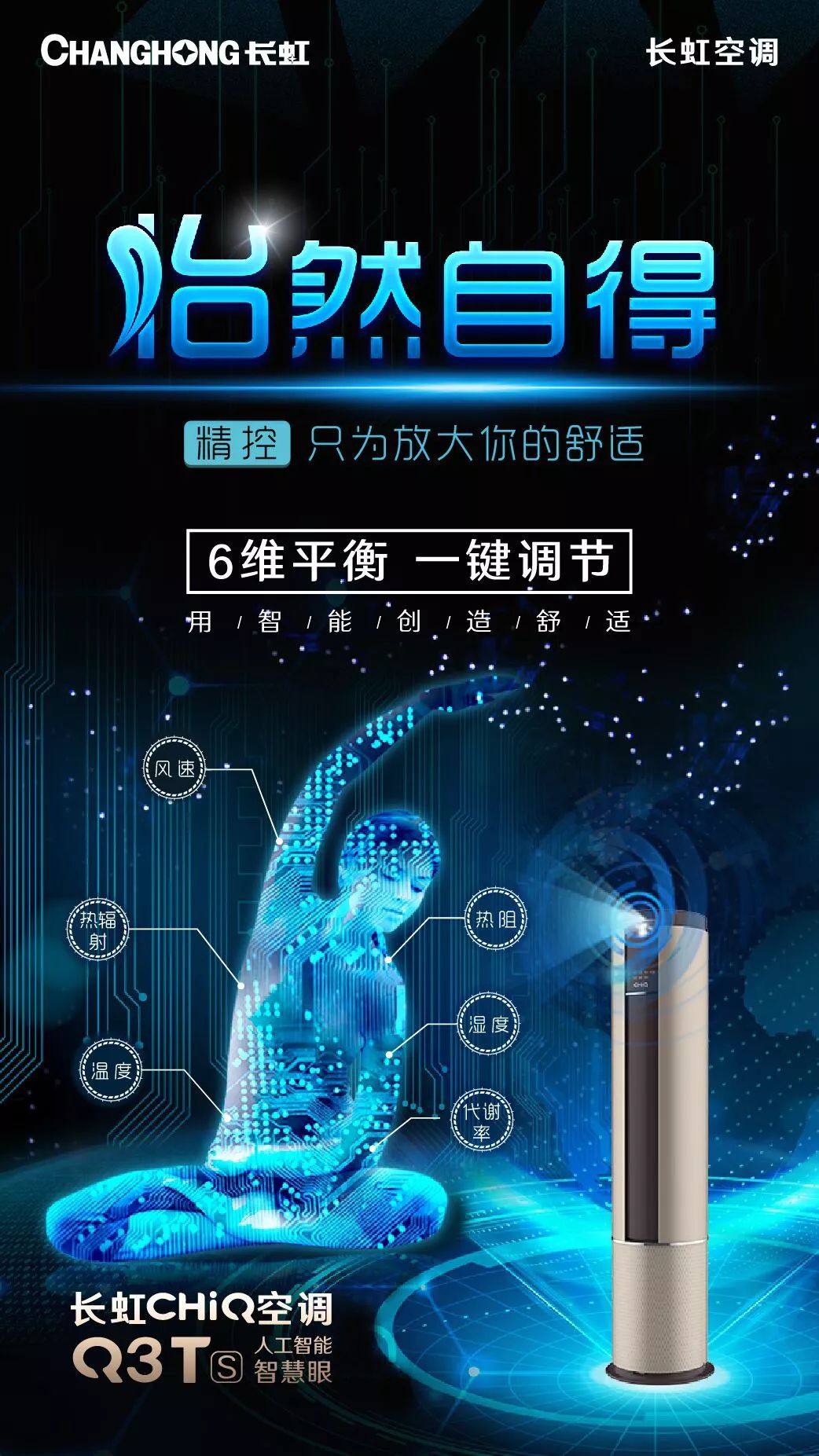 在这张蓝图构建中,长虹也是倾尽全力为我们集中展示了以“轻松自在 美好生活”为主题的酷炫科技创新成果,重磅推出CHiQ Life智慧家庭解决方案,为用户带来更舒适、更便捷、更轻松的美好生活。作为CHiQ Life中提供舒适空气的核心设备,长虹CHiQ空调2018代表之作Q3Ts人工智能智慧眼柜机重磅发布,其倡导的“用智能创造舒适”的理念引发行业强烈关注。