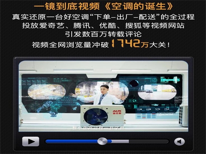 为此,奥克斯通过“一镜到底”的形式,专门为全球消费者准备一部“奥克斯空调诞生记”大片。在短短270秒时间中,奥克斯完美展示出从用户下单到安装上墙,经历的200多道检测工序,经历原材料采购、零部件检测、智能制造、物流配送、送货安装5个环节。