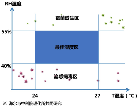 在空气抑菌方面,中国科学院与海尔空调的共同研究显示,将室内空气湿度维持在40%-55%、室内温度控制在24°C-27°C,能创造最佳抑菌温湿环境,也是人体最舒适的环境。海尔温湿双控空调全球首创柔湿变频技术,拥有34项发明专利,能智慧监测室内温度和湿度,实现最佳抑菌温湿环境,也是人体最舒适的环境。
