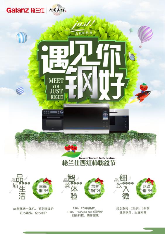 格兰仕作为品质家电的名片企业率先行动,日前在全国范围内启动“遇见你,钢好”主题西红柿品质节,联合苏宁、国美等“国民家电品质生活”战略合作伙伴,聚焦微蒸烤一体机Q6、蒸烤炉R60、纯蒸炉P90等全套高端不锈钢家电普及,为全国用户提供全方位的品质生活新选择。