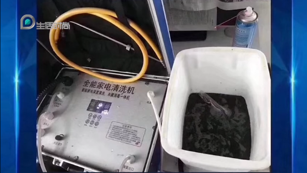 家住青岛市山水名园小区的王女士家柜式空调在进行蒸发器清洗时,流出的水呈现如墨般的黑色,并在桶内不时冒出白色泡沫。