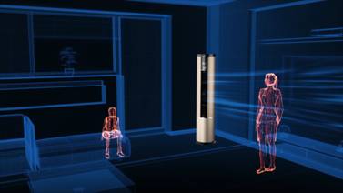 对于MR.EYE来说,这一切都不是问题。空调遥控器找不到?没关系,跟MR.EYE说句话或者挥挥手就可以打开空调;开太久电费高?有人时MR.EYE才自动打开,没人时就关机,人少了还自动降低功率;空调降温太厉害?MR.EYE送风到人,温度适宜,减少人们对空调病的担心。