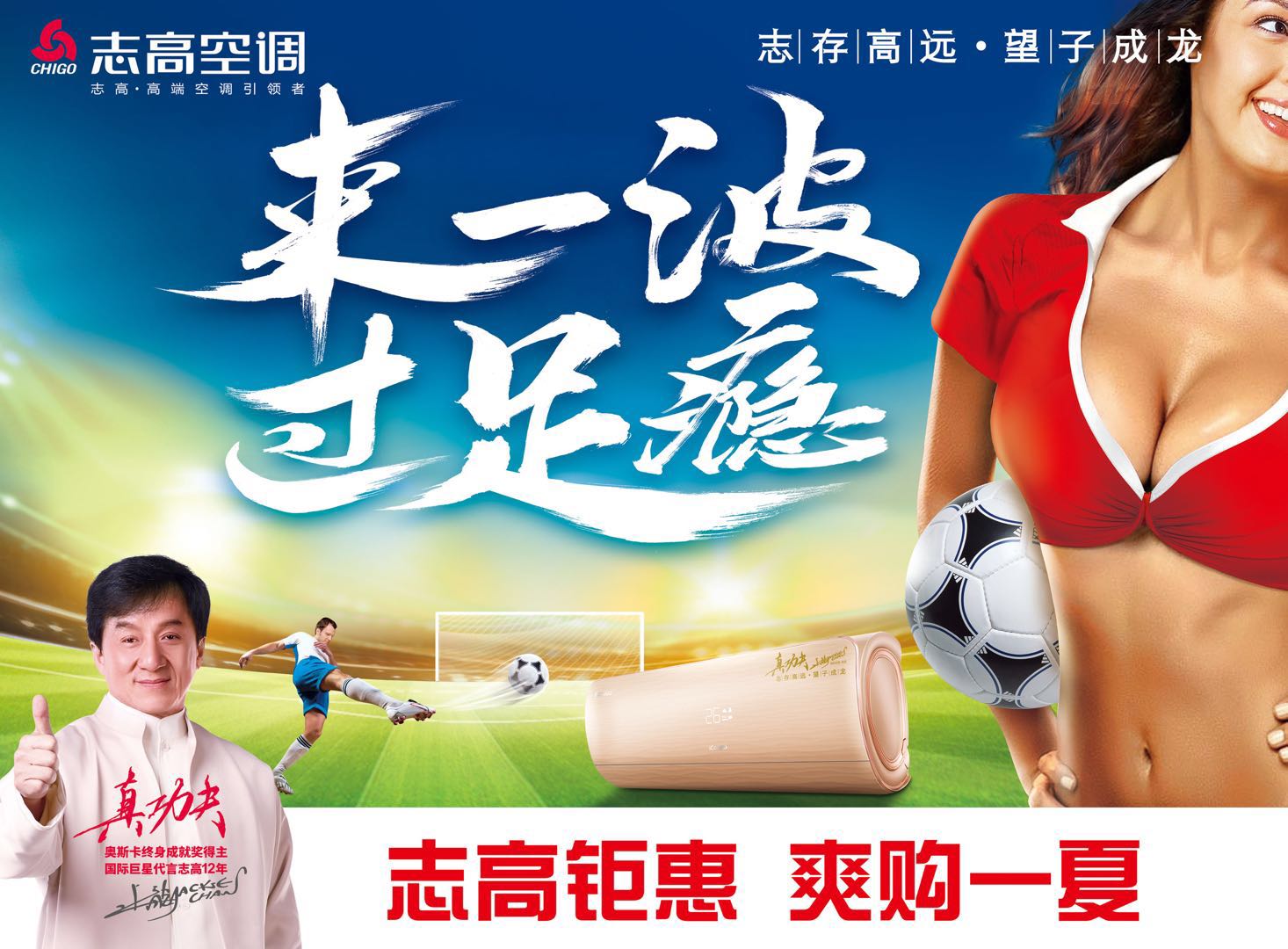 面对世界杯年,借助今年端午节、父亲节、世界杯的三节合一,志高再次祭出品牌大动作,在市场上以“来一波 过足瘾”为主题引爆线上线下全渠道钜惠,品牌上以总冠名商身份加盟作为国内互联网第一足球平台的PP体育《世界杯早班车》,这也是志高2018旺季在体育营销的再度升级。借助足球盛宴时间的黄金节点,志高不仅将整个市场促销周期从6月向7月全面打通,更为今夏所有热血沸腾的球迷送去清凉舒爽,感受空气中的魔力。