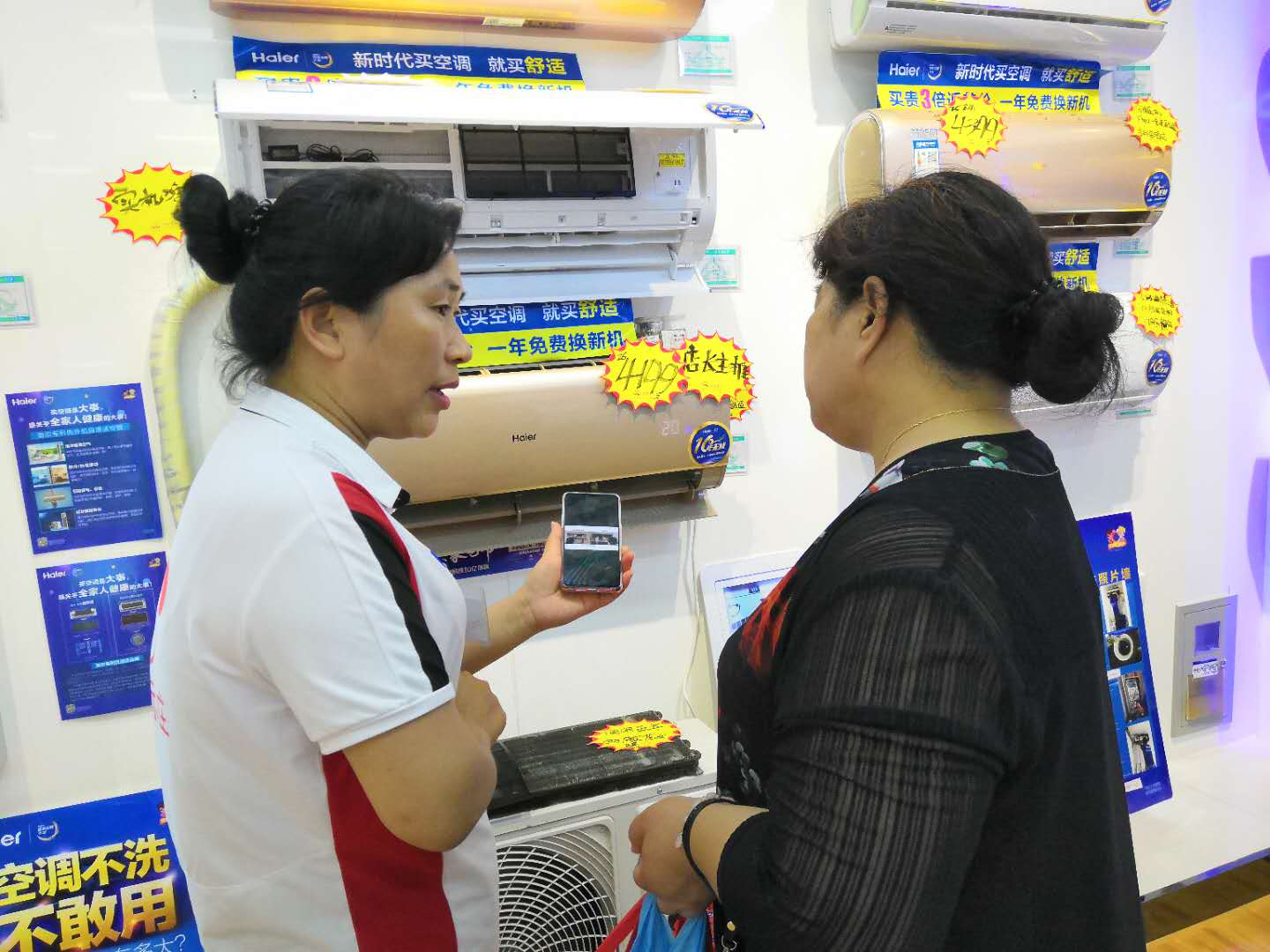 以往买空调先听产品讲解再下单,现在买空调看完视频就下单。买空调听不如看,6月中旬,海尔空调在全国2000余家卖场的电视屏上直播空调清洗过程,实拍普通空调与海尔自清洁空调洗下的一黑一清两色水。6月29日,在北国益东百货购物中心,石家庄市民张女士在看完视频后,当场下单一柜一挂2台海尔自清洁空调。同样,湘潭岳塘区的罗先生在观看视频后下单1台高端自清洁空调。海尔空调相关负责人表示,在卖场视频播放过程中,空调洗出的黑水直接激发了用户的换新需求,现在每10位用户就有8位主动询问空调是否带有自清洁功能。