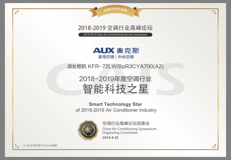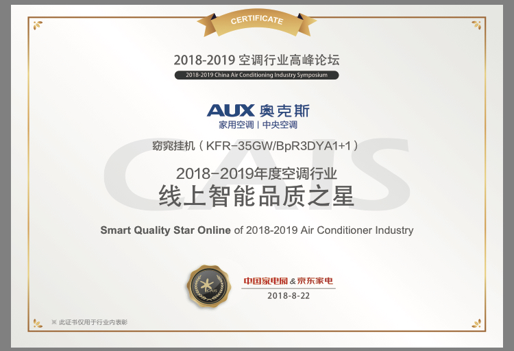 在获奖名单中,奥克斯空调品牌荣获“2018-2019年度空调行业品质标杆”。同时年度重磅推出的两款产品分别在线上和线下领域占据制高点。线下淑女柜机(KFR-72LW/BpR3CYA700(A2))获得2018-2019年度空调行业智能科技之星,线上窈窕挂机(KFR-35GW/BpR3DYA+1)获得2018-2019年度空调行业线上智能品质之星。