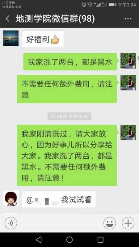 据介绍,该小区临近江苏师范大学,居民多为校内老教授,居住时间大多在十五六年以上,家中空调的使用时间普遍在10年左右,空调一直没有拆洗过。7月20日,江师大史教授在海尔门店报名公益清洗行动,家里两台老空调都洗出了黑水。史教授表示,“新房安装的就是海尔自清洁空调,空调能自己清洗,对家人健康也是一种保障。”服务结束后,史教授随即把海尔公益清洗空调的信息分享到了教师群,帮助同事们认识到空调脏的问题。
