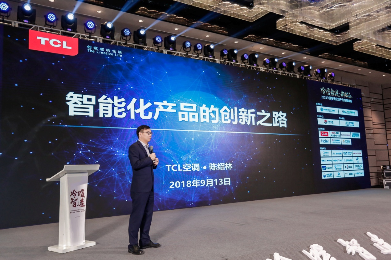在2018中国暖通空调产业发展峰会“智未来”分论坛上,围绕 “智能”、“生态”等热词,TCL空调事业部总经理陈绍林向与会嘉宾分享了《智能化产品的创新之路》主题演讲。他表示,消费升级时代,消费者渴望的好产品应该具备三个特点:精致时尚(完美设计)、先进技术(算法)、时代特征(智慧智能),具备这三个特点的产品才会有内涵和品位,TCL空调按以上原则创造精品,做不出内涵和品位宁愿不上市。