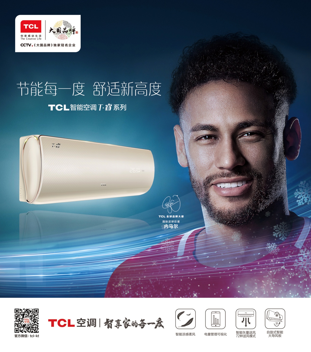 而这恰好与TCL空调的主张不谋而合。2018年,TCL空调以“智享家的每一度“为消费者传递价值和品牌理念。从愉悦度、节能每一度、气流舒适的满意度、温度、湿度、洁净度及360度互联互通,为消费者创造舒适生活享受,TCL空调始终以智能战略为引导,以消费者需求为中心,不断进阶的产品力。如TCL空调的完美设计产生视觉的愉悦度;节能每一度、省钱看得见,让空调用电可视化;凉感柔风功能,让消费者不再受空调病的烦恼。