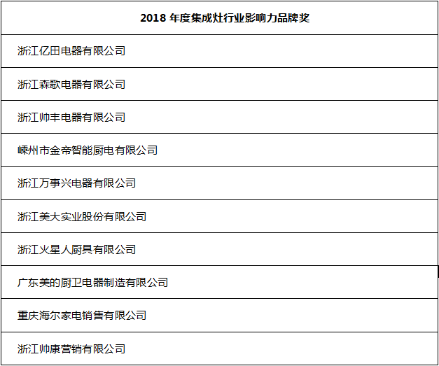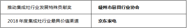 为了树立集成灶品类概念,界定品牌指导消费,推进集成灶行业健康有序发展,组委会现场还公布了2018年度集成灶行业影响力品牌、单项产品奖、推动集成灶行业发展特殊贡献奖,最具价值渠道等奖项。