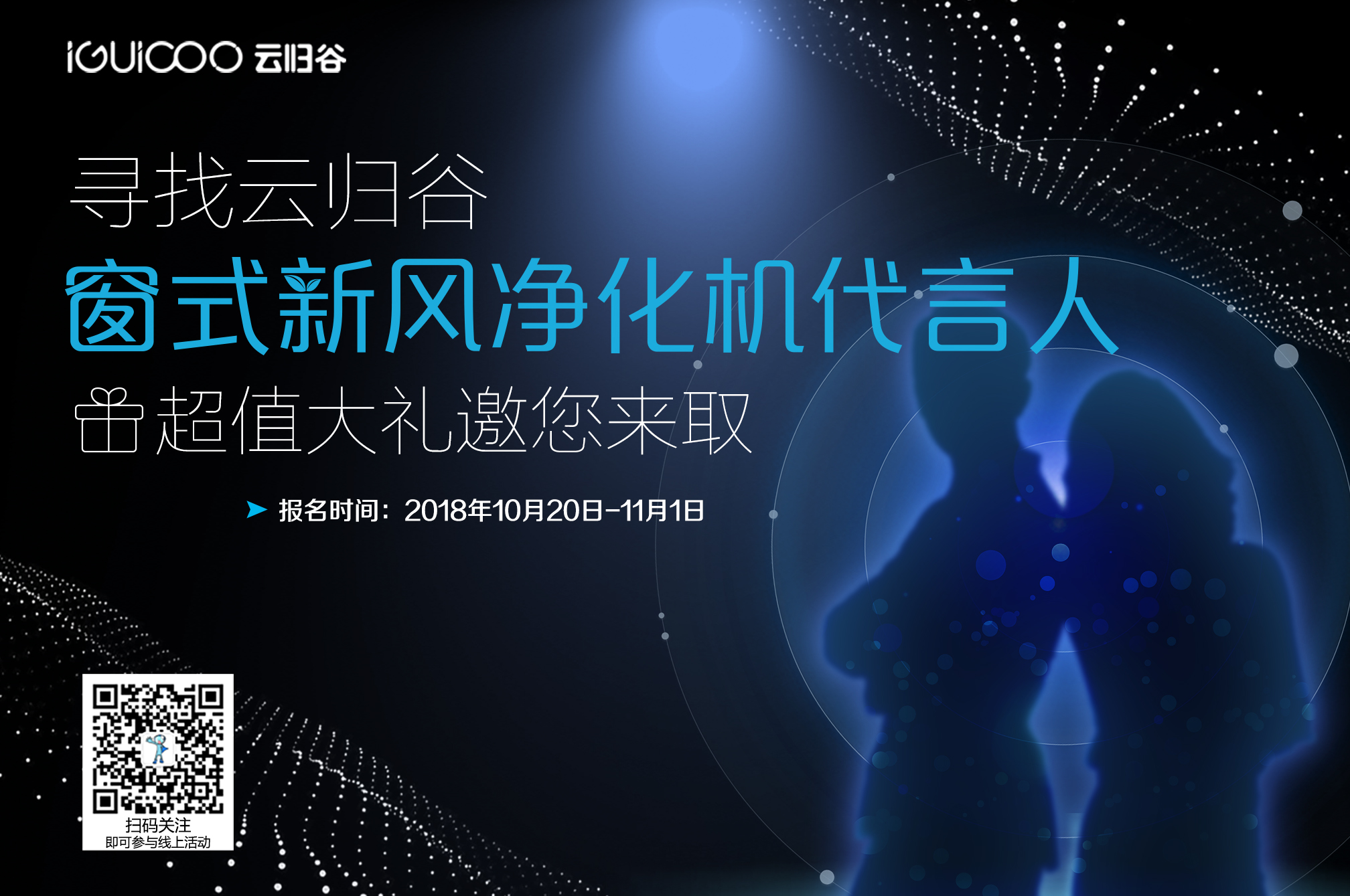 10月20日至11月1日期间,关注“云归谷iguicoo”微信公众号,回复“代言人”即可参与本次活动,成为一名代言人候选人。每个参与用户都需要通过投票数的多少来与其他用户公平竞争代言人的资格,以此为自己的鲜净呼吸而发声。机会多多,奖励也不少,只要参与就有机会将价值5980元的窗式新风净化机免费抱回家!