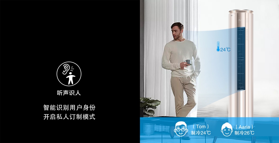 长虹CHiQ空调Q5Ds、Q5Gs系列AI人工智能空调通过创新的“声纹感控”技术,具备“识人”能力,智能识别用户身份,开启私人订制模式,实现从整体化智能识别向家庭智能环境识别的飞跃。