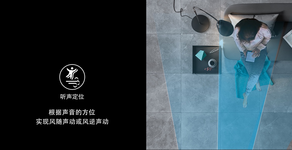 长虹CHiQ空调Q5Ds、Q5Gs系列AI人工智能空调通过创新的“声纹感控”技术,具备“识人”能力,根据声音的方位,实现风随声动或风逆声动。