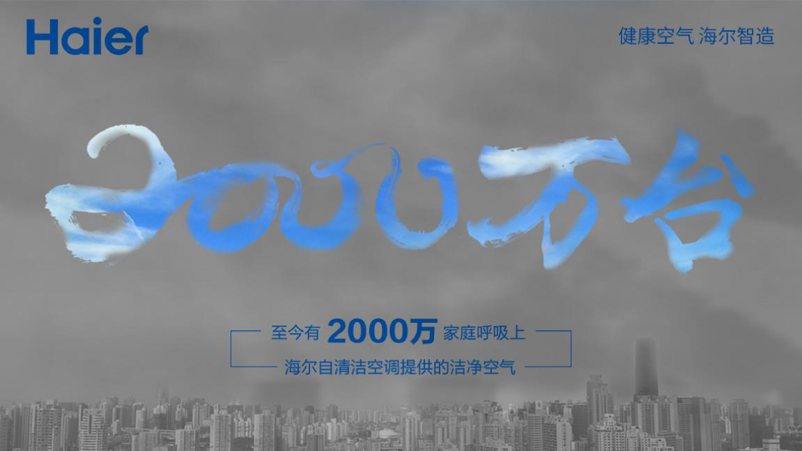 11月7日,海尔空调对外发布一张海报,内容显示:截至今年10月底,海尔自清洁空调销量已达2000万台。这意味着已有2000万家庭呼吸上海尔自清洁空调提供的洁净空气。据悉,2015年8月海尔发明自清洁空调,按照上市38个月推算,平均每5秒就诞生1个海尔自清洁空调家庭。