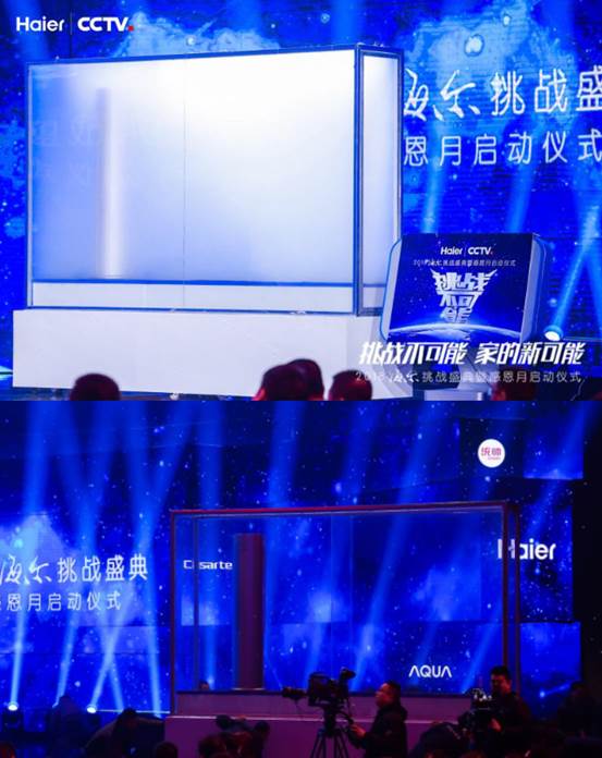 11月24日,2018海尔挑战盛典暨感恩月启动仪式在央视影视基地启动。在第一个挑战项目——极速心算挑战环节中,速算师李顺实在1分钟内要完成100笔四位数的加法速算挑战。这100笔数字投影在现场玻璃房内的烟雾中,1分钟内烟雾将被海尔净界自清洁空调净化干净,100笔数字投影随之消失,速算师李顺实在数字消失之前算出结果,即为挑战成功。
