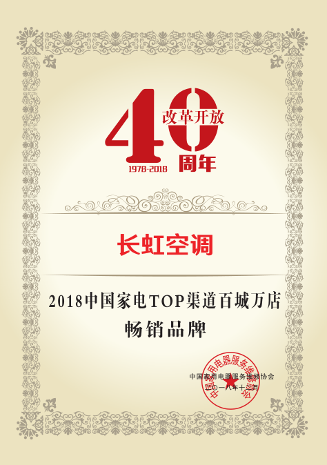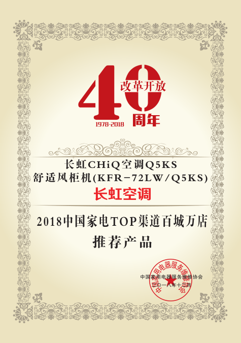 年会以 “服务驱动·创新流通”为主题,回顾总结中国家电40年发展的过往经验,探讨家电行业新流通、新消费、新服务,为家电产业的健康发展赋能,探索家电行业未来的发展方向。其间会议还隆重表彰了行业优质品牌、高端产品及在家电零售服务领域极具影响力的流通企业。长虹空调因在2018年杰出的市场表现获“2018中国家电TOP渠道百城万店畅销品牌大奖”,长虹CHiQ空调Q5Ks舒适风柜机获“2018中国家电TOP渠道百城万店推荐产品大奖。”