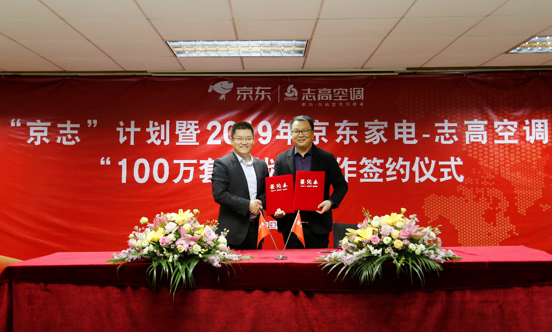 京东家电事业部空调业务部总经理邱志浩、志高空调国内营销本部总经理谭燕兵等出席了战略合作协议的签约仪式。会上,双方宣布2019年结成全面战略伙伴关系,共同打造“百万套”的“京志”战略计划,实现信息共享、优势互补、共同发展。同时,双方也将以更加积极、主动的姿态参与新年度的市场竞争与抢夺。