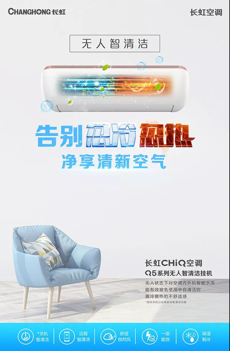 针对传统自清洁空调开机状态自清洁一边加热烘干,一边制冷吹风让人忽冷忽热很难受的痛点,长虹空调推出了无人智清洁挂机。关机智清洁,遥控器一键启动,手机APP远程操控,使用空调前进行智清洁,无人在场更得意。这样一款洗澡都让人如此省心的空调,有没有对TA动心呢?