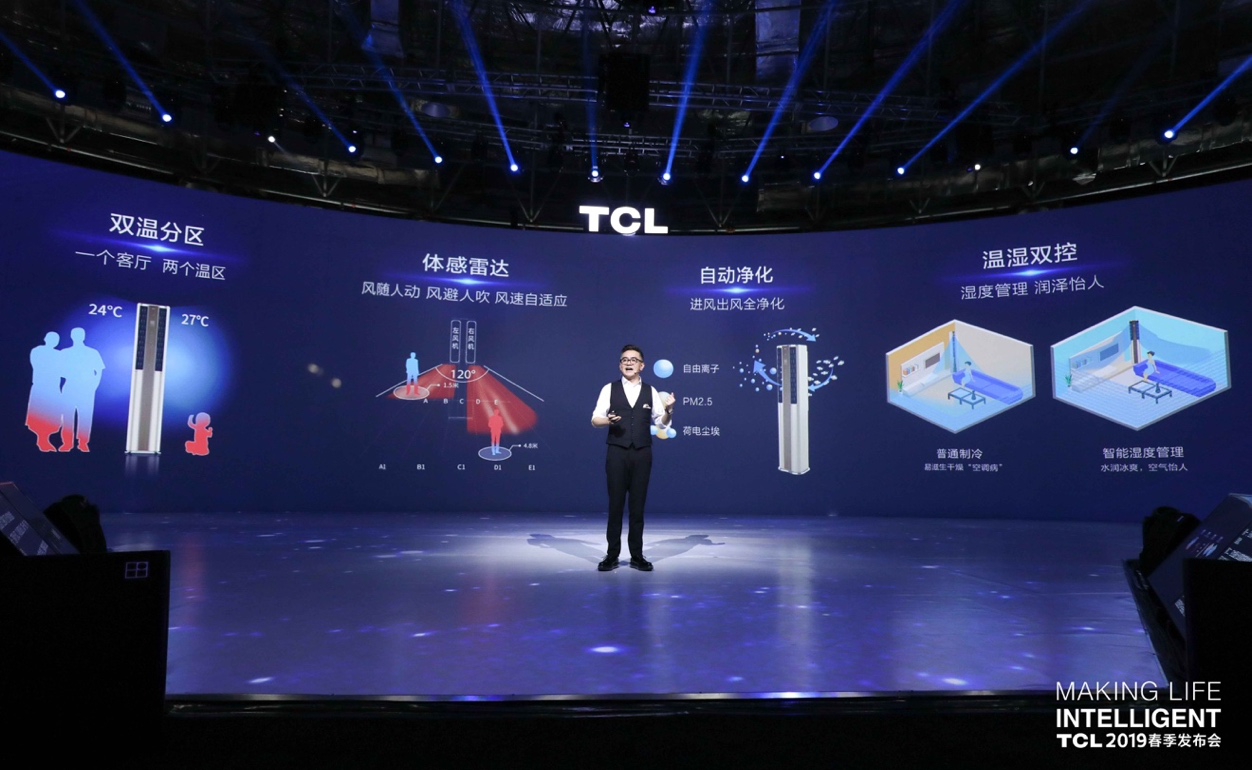 3 月 12 日,TCL 2019春季发布会在上海拉开大幕。今年发布会上,TCL智能终端业务群以“Making Life Intelligent”为主题,推出TCL全场景AI,以及AI×IoT”生态为核心的“4T”战略,进一步深化从全球家电第一阵营向全球智能科技领先公司的转型。当天,多款全场景智能终端新品集中亮相。TCL空调推出智能双温区客厅新品,聚焦全场目光。