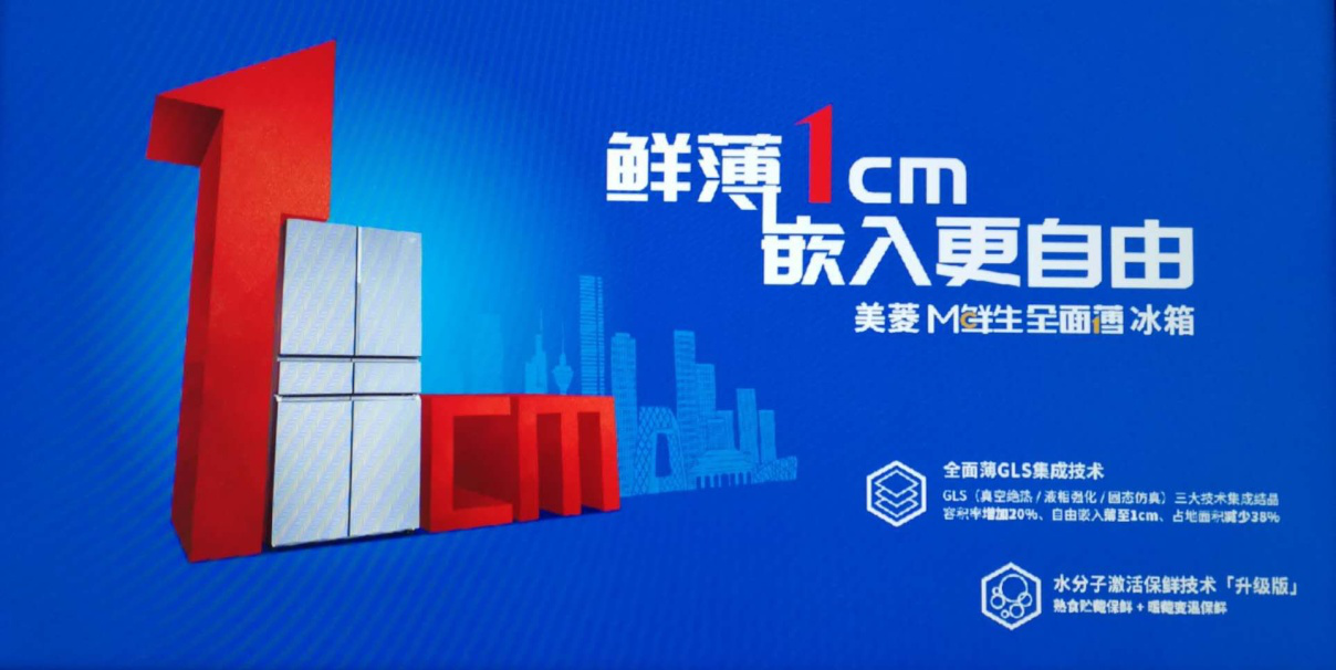 美菱全面薄冰箱系列搭载了美菱独创的GLS集成技术和水分子激活保鲜技术,在保鲜领先行业的基础上,创新结构设计,实现了“特能装、好嵌入、占地少”的消费需求。数据显示,同等体积下,全面薄冰箱容积同比提升20%;同等容积下,全面薄占地面积减少38%。同时,凭借结构设计的创新,全面薄冰箱的嵌入距离只需要1CM即可实现自由嵌入,真正做到“鲜薄1CM,嵌入更自由。”